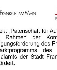 Unsere sozialpädagogischen Projekte werden durch die Stadt Frankfurt am Main und der WI-Bank gefördert; klicken Sie bitte auf den jeweiligen Seiten.